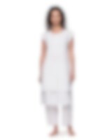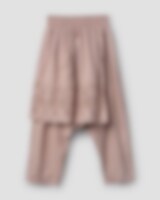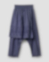 Just like with all our clothes, it's your creativity that has the final say. Our trousers invite layering, where one pair of trousers can peek out from under the skirt. Ewa i Walla's trousers often draws inspiration from past men's fashion and turn-of-the-century laborers. They should feel a bit worn and shaped for freedom of movement - airy and with a low crotch. Here, you'll find Ewa i Walla's characteristic "slightly unexpected" handmade details, like embroidered lace and sashiko stitches. The fabrics in our trousers, underpants, jumpsuits, and leggings are natural materials like cotton, linen, and wool in both natural solid tones and more lively checkered and striped patterns, and of course, Ewa i Walla's hand-painted floral patterns in watercolor.