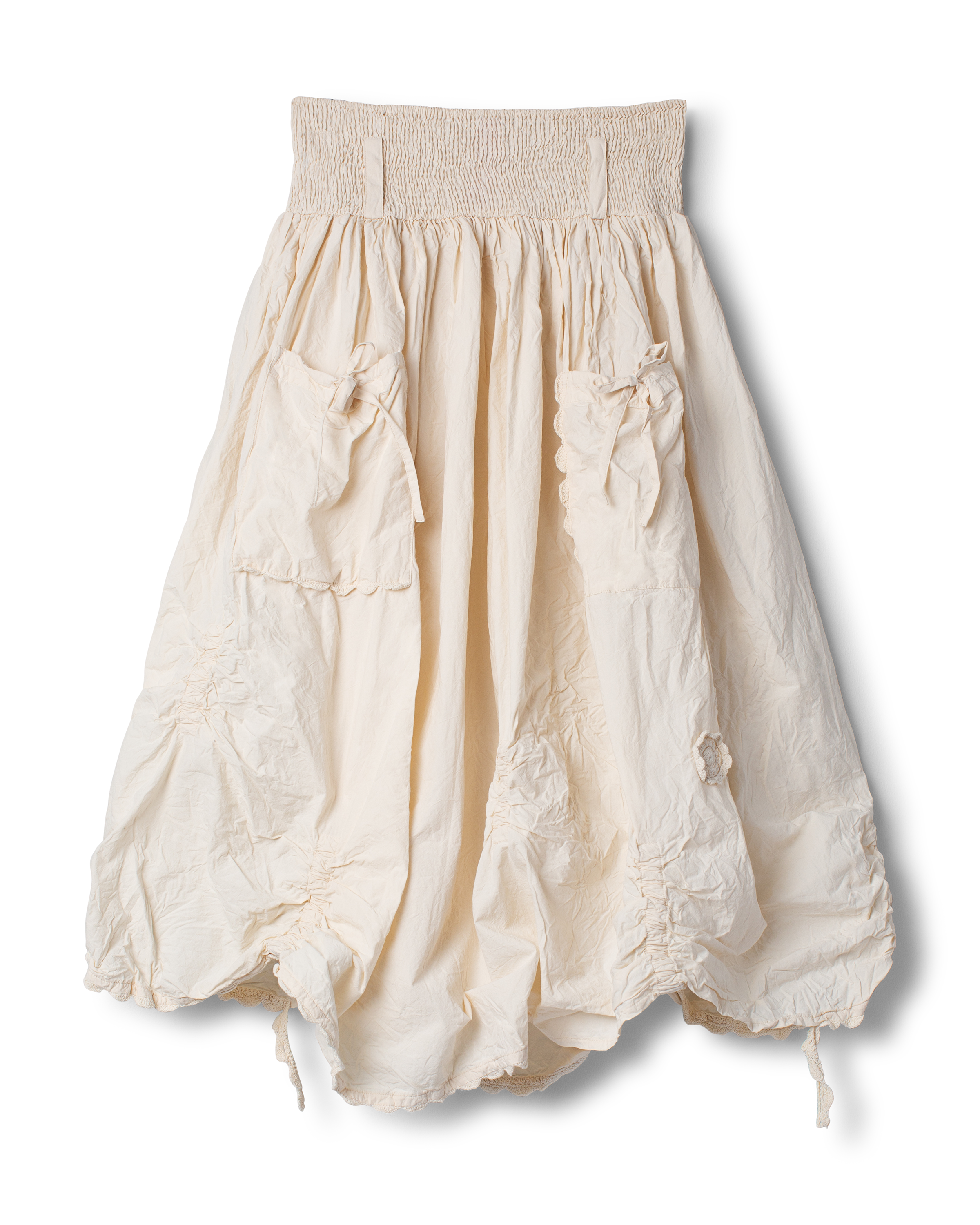 Here, sheer organza meets embroidered cotton voile, ruffles mix with raw edges, and classic silhouettes are brought to life with unexpected elements – like hand-stitched repairs or lace that softly peeks through.