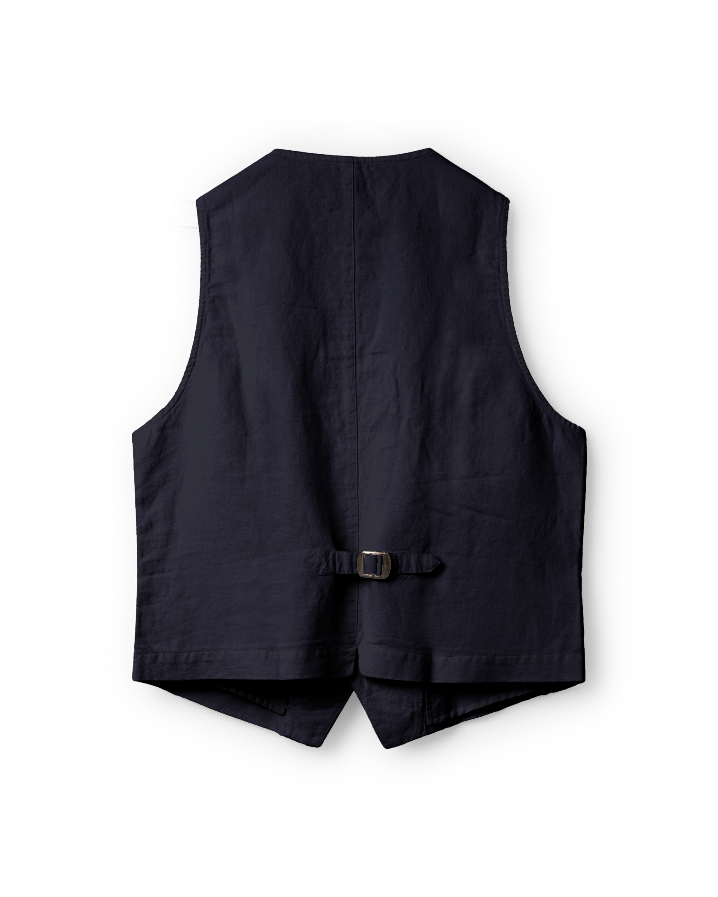 Men's vest in twill in a slightly fitted model with flap pockets and mending detail front. Welt chest pockets and front buttoning with one buttonhole in a different colour for a playful effect, strap with vest buckle at the back.