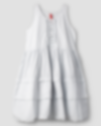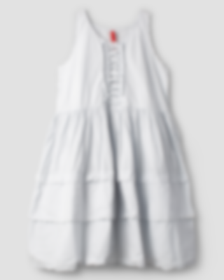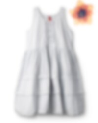 Knee-length, sleeveless dress in cotton with lacing at the front. Wrinkled from the waist for lovely volume, pockets in side seams and beautiful scallop seam endings.