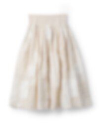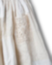 Ankle-length skirt in patch in this season's lovely twill, linen and greige cotton, decorated with embroidered monogram, mending details and beautiful lace pocket on left side. Smock at the waist for a good fit, belt loops, wrinkled from the smock for a lovely volume and side seam pockets.