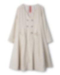 V-neck coat in linen, double breasted with different buttons and one buttonhole sewn in red for a playful effect. Jetted pockets front, vents with buttoning at the bottom in side seam. Lining in cotton, sleeves with viscose.