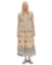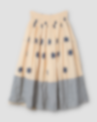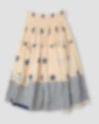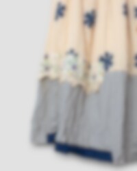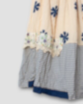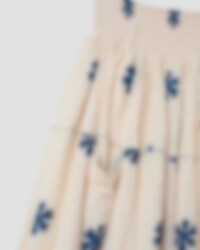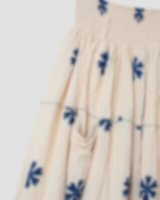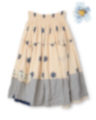 Ankle-length floral skirt in a lovely mix of blue flower and striped cotton with decorative details. Smock at the waist for a good fit, belt loops at the waist and pockets in front.