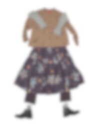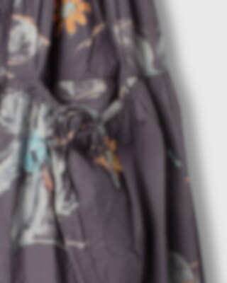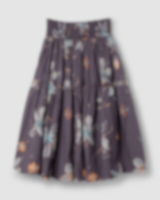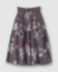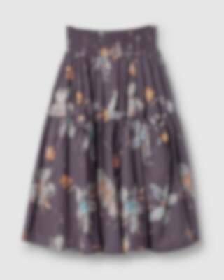 Calf-length, floral skirt in organic cotton with smock at the waist for a good fit and belt loops. Wrinkled from the smock for lovely volume and pockets with decorative tie ribbons at the front.