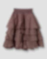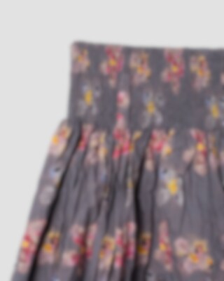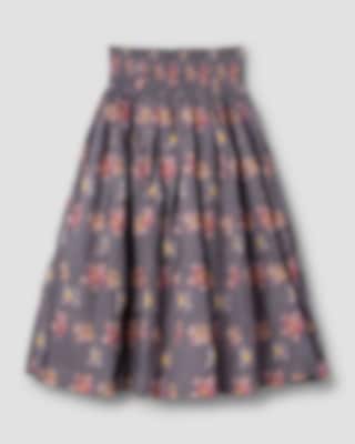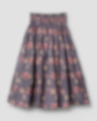 Calf-length skirt in organic flower cotton with smock at the waist for a good fit and belt loops. Wrinkled from the smock for lovely volume and side seam pockets.