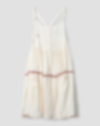 Calf-length halter dress in linen with beautiful hand made smock detail at the back. Block prints, buttoning and jetted pockets at the front, wrinkled from the waist for lovely volume.