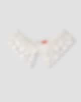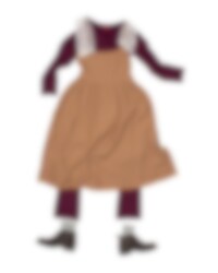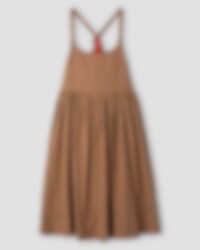 Calf-length halter dress in checked linen decorated with patches, beautiful handmade embroideries and velvet ribbon. Buttoning at the back, wrinkled from the waist for lovely volume and adjustable skirt with tie ribbons, side seam pockets.