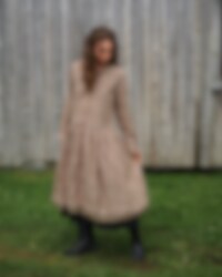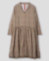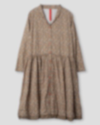 Calf-length floral dress in cotton with long sleeves and lapel collar. Buttoning at the front, adjustable elastic band at the back, wrinkled from the hip for lovely volume and pockets in side seam.