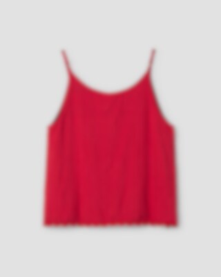 Viscose top with adjustable shoulder straps and beautiful crocheted cotton lace at the bottom. The perfect top to wear under all our models in sheer organdie.