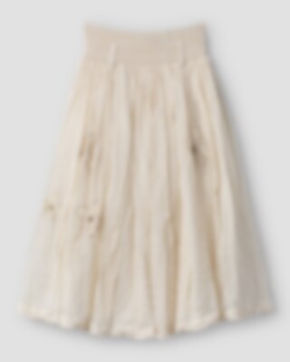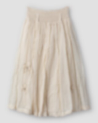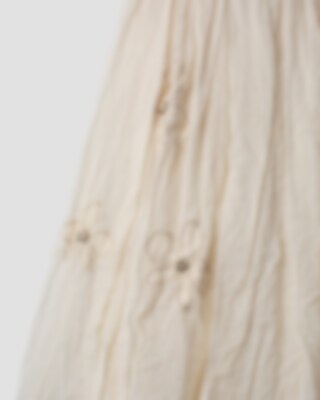 Ankle-length organdie skirt with beautiful flower applications and lace. Smock at the waist and belt loops, wrinkled from the smock for lovely volume, petticoat in viscose.