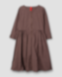 Calf-length dress in organic cotton with a zipper at front, vents with elastic band and buttons at sleeves and at the bottom. Wrinkled from the waist for lovely volume, side seam pockets and crocheted lace at hem.