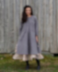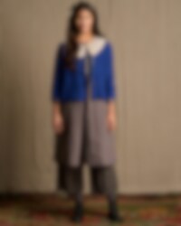 Cotton blouse in four panels, three quarter sleeves with buttons. High vents in mid front, mid back and in the side seams, jetted pockets front and buttoning at the back.