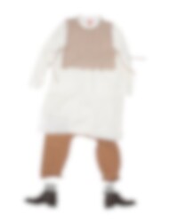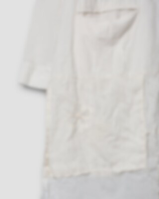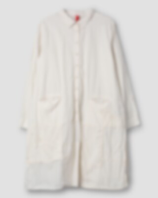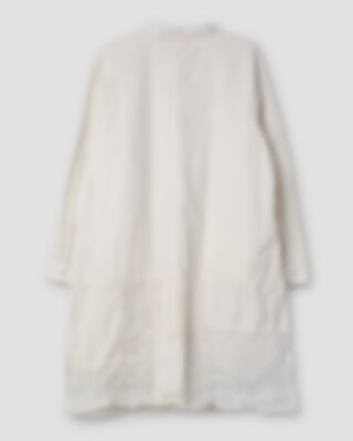 Long-sleeved shirt in organic cotton with patchwork in linen and organdie. Buttoning and jetted pockets at the front, decorative details with flower and lace.