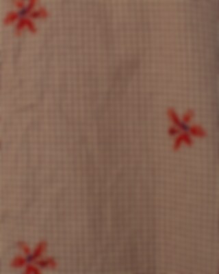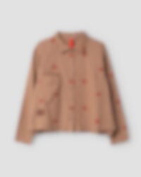 Long-sleeved blouse in checked cotton with printed flowers, collar and buttoning at the front. Jetted pocket and decorative mending detail on right side, vents in side seam.