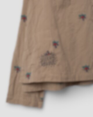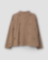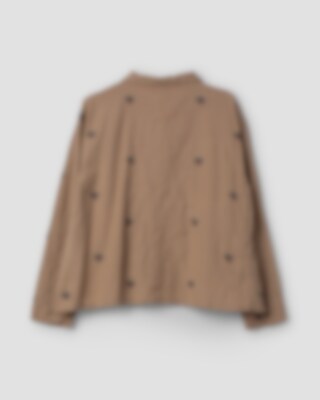Long-sleeved blouse in checked cotton with printed flowers, collar and buttoning at the front. Jetted pocket and decorative mending detail on right side, vents in side seam.