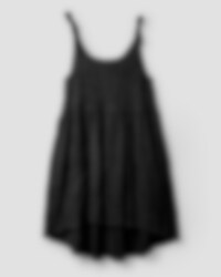 Sleeveless tunic in embroidered voile with tie ribbons at the shoulders. Buttoning at the back with crocheted buttons, wrinkled from the waist for lovely volume and side seam pockets.