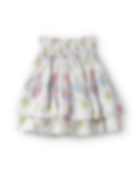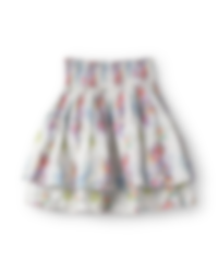 Short skirt in flower cotton with double layers, attached on smock and with raw edges. Smock at the waist for a good fit, belt loops and wrinkled from the smock for a lovely volume.