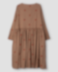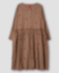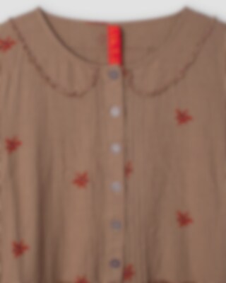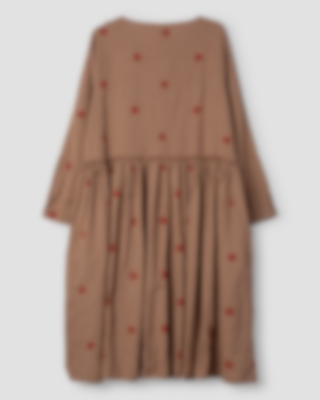Knee-length dress in checked cotton with printed flowers, long sleeves with vents and button. Attached collar, pin tucks and buttoning at the front, wrinkled from the waist for lovely volume and side seam pockets.