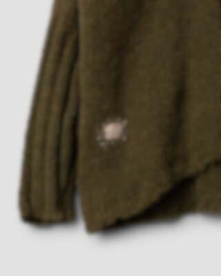 Knitted pullover in soft alpaca with rib knitted sleeves and decorativ mending detail. Please note that the garment may dry bleed when in contact with light-colored materials.
