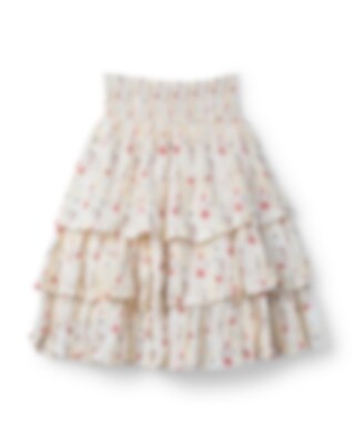 Blommig bomullskjol med flera volanger