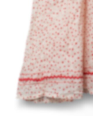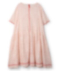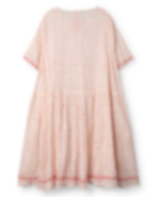 Vadlång, kortärmad klänning i prickig bomullsvoile dekorerad med fagotsömmar och vackra sicksackband i rosa. Delvis rynkad kjol för en härlig volym, fickor i sidsöm och underkjol i enfärgad voile.