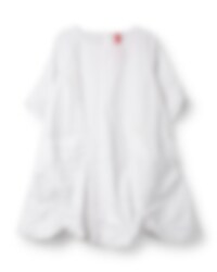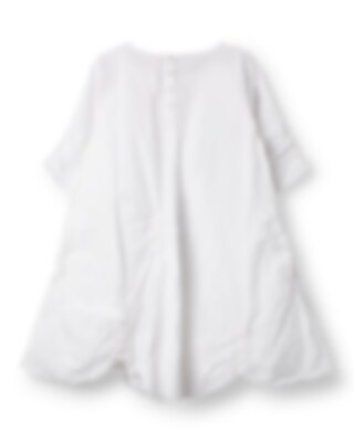 A-linjeformad, kortärmad tunika i bomull med fastsydda resårer på insidan och i ärm för en lekfull effekt. Vackert dekorerad med broderier, sashiko-stygn och lappar med lagningsdetaljer, utanpåliggande ficka fram på höger sida och knäppning bak.
