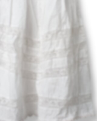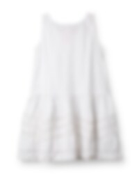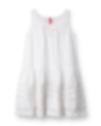 Ärmlös tunika i bomull med virkad spets runt ärmhål och i nederkant. Snörning fram, rynkad kjol för en härlig volym och vackert dekorerade med många infällda spetsar, fickor i sidsöm.