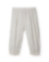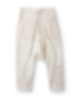 Precis som med alla våra kläder är det din kreativitet som får sista ordet. Våra byxor bjuder in till att tänka lager på lager, där en byxa kan få titta fram under kjolen. Ewa i Wallas byxor hämtar gärna inspiration från det svunna herrmodet och sekelskiftesarbetaren. Det ska kännas lite använt och format för rörelsefrihet – luftigt och med låg gren. Här finns Ewa i Wallas karaktäristiskt ”lite oväntade” handgjorda detaljer, som broderade spetsar och sashikostygn. Tygerna i våra byxor, underbyxor, jumpsuits och leggings är av naturmaterial som bomull, lin och ull i såväl naturnära enfärgade toner som mer livliga rutiga och randiga mönster och så klart Ewa i Wallas handmålade blommönster i akvarell.