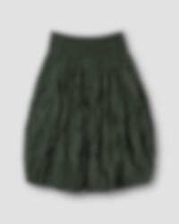 Vadlång ballongkjol i bomull med sydda knutar, smock i midjan för en bra passform och hällor för bälte. Rynkad från smocken för härlig volym, passpoalfickor fram och resår i nederkant.
