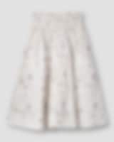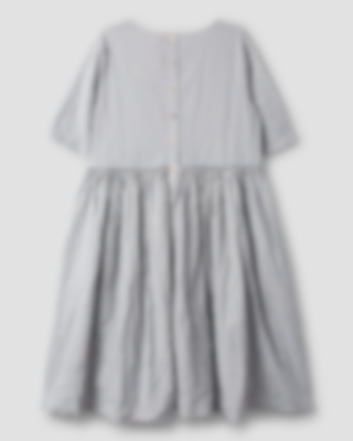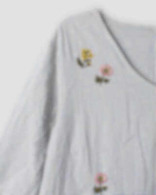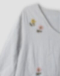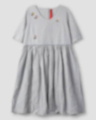 Knälång, smårutig klänning i bomull/lin med kort ärm. V-ringad, knäppning bak, dekorerad med vackra broderade blommor och rynkad från midjan för härlig volym, fickor i sidsöm.