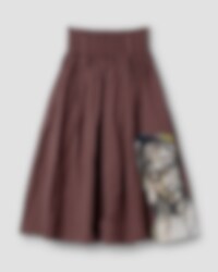 Ankellång kjol i ekologisk bomull med vackert tryck målat av Ewa. Smock i midjan för en bra passform, hällor för bälte, rynkad från smocken för härlig volym och fickor i sidsöm.