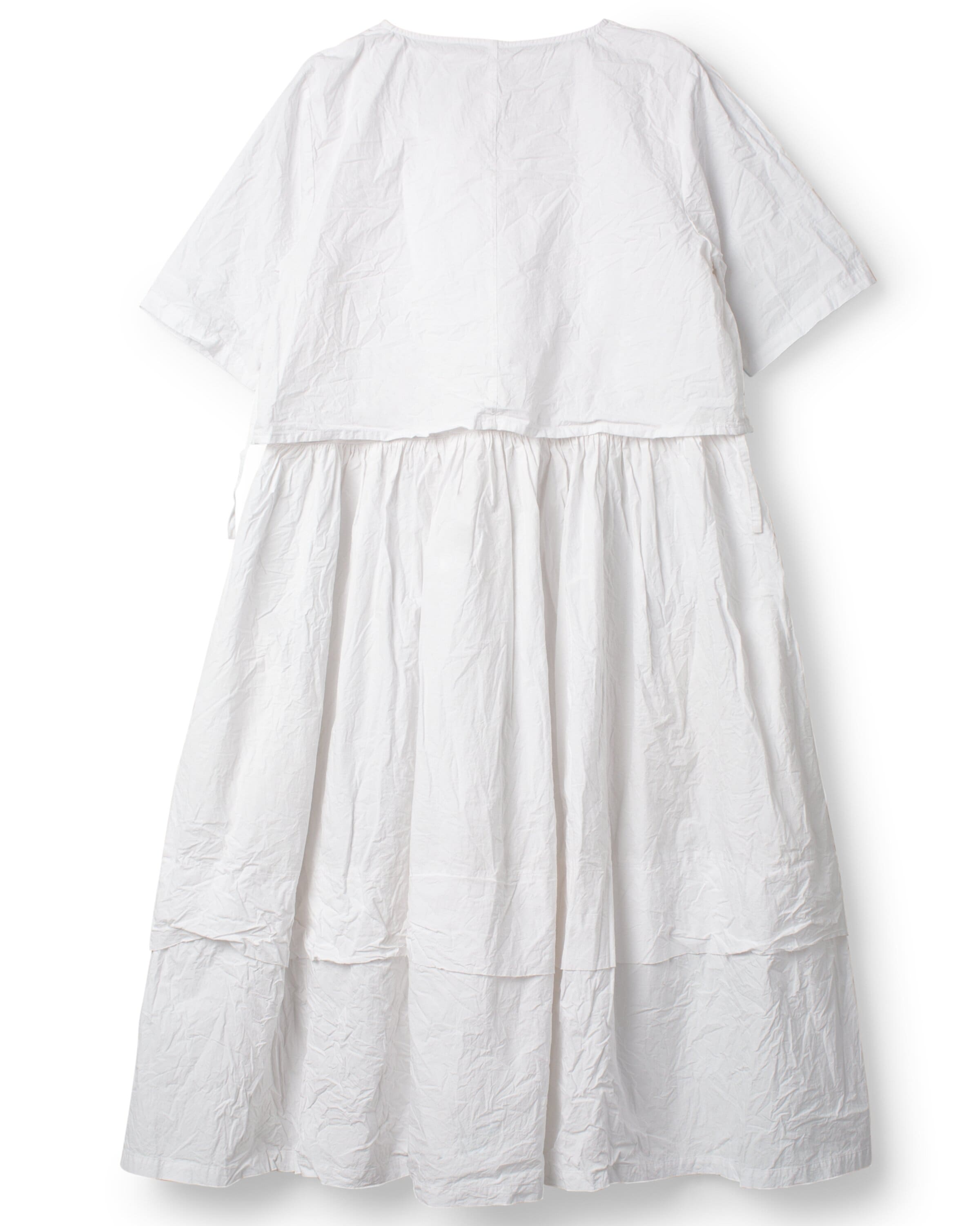 Vadlång, kortärmad klänning i bomull med broderade blommor. Omlottliv i dubbla lager med knytband, rynkad kjol med veck för en härlig volym och fickor i sidsöm.