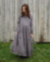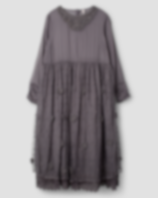 Ankle-length dress in organdie and tulle with crocheted flowers, long sleeves with elastic hem. Beautiful lace, buttoning at the back and wrinkled from the waist in three layers. Please note that this dress is transparent and we are using a dress under.