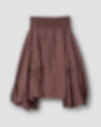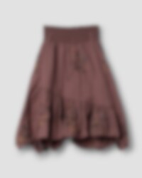 Knee-length skirt in embroidered cotton with smock at the waist for a good fit and belt loops. Playful skirt with flounce, adjustable with tie ribbons and side seam pockets.