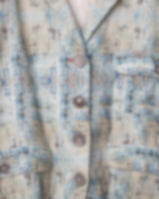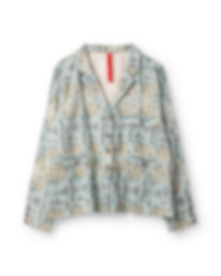 Jacket in linen with lapel collar and sleeves ending with vents and buttoning. Flap pockets with button and buttoned front with one buttonhole sewn in red for a playful effect. Lining in cotton, sleeves with viscose.