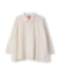 Wide blouse in sushi voile with three-quarter sleeves and collar. External chest pocket left and buttoned front, small loop for decoration in mid back and vents in side seam.