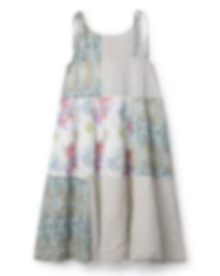 Sleeveless, calf-length dress in a playful mix of this season's checked voile, flower cotton and striped voile. A-line cut with tie ribbons on shoulders and side seam pockets.