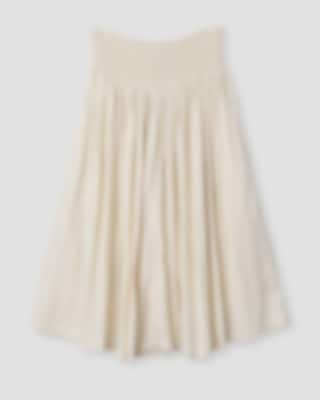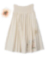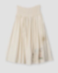 Calf-length skirt in linen with smock at the waist for a good fit. Wrinkled from the smock for lovely volume, pockets in side seams and a playful embroidery at the front.