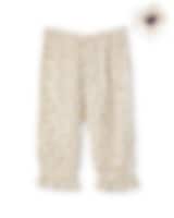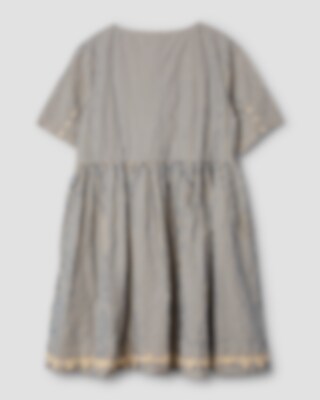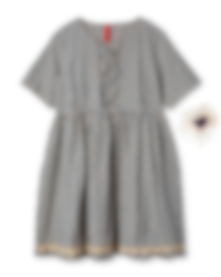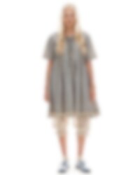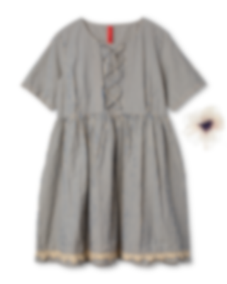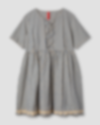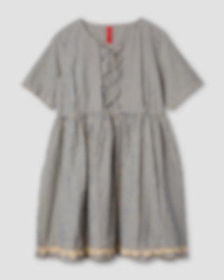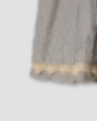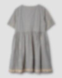 Short-sleeved tunic in striped cotton with lacing at the front. Wrinkled from the waist for lovely volume, pockets in side seams and ending with beautiful lace.