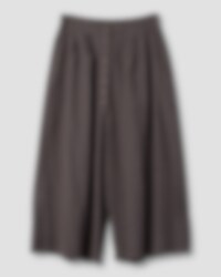 Wide trousers in cotton-wool with pleats and belt loops in waist, low crotch with buttoning front and pockets in side seam. Channel with elastic ribbon and buttons for adjustable fit and jetted pockets at the back.