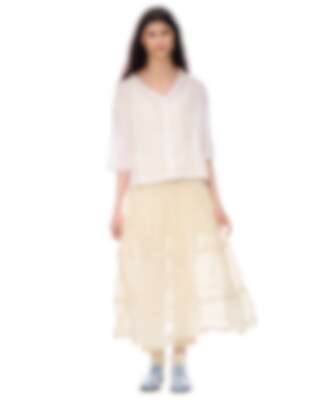 Ankle-length skirt in sheer organdie with smock at the waist for a good fit. Wrinkled from the smock for lovely volume and channels with steel wire for a playful effect.