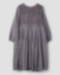 Calf-lenght dress in linen with crocheted top, long sleeves with elastic hem. Buttoning at the back, wrinkled skirt for lovely volume with beautiful prints and embroidered details.